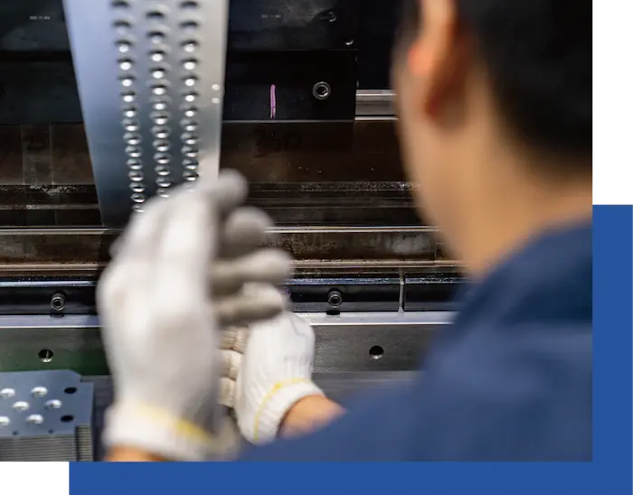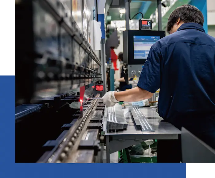 鉄板をプレスブレーキという機械で曲げ加工致します。箱状の物からV曲げ、L曲げ、U曲げ、Z曲げなど様々な加工が可能です。コンピュータで制御されておりますのでより精度の高い加工ができます。